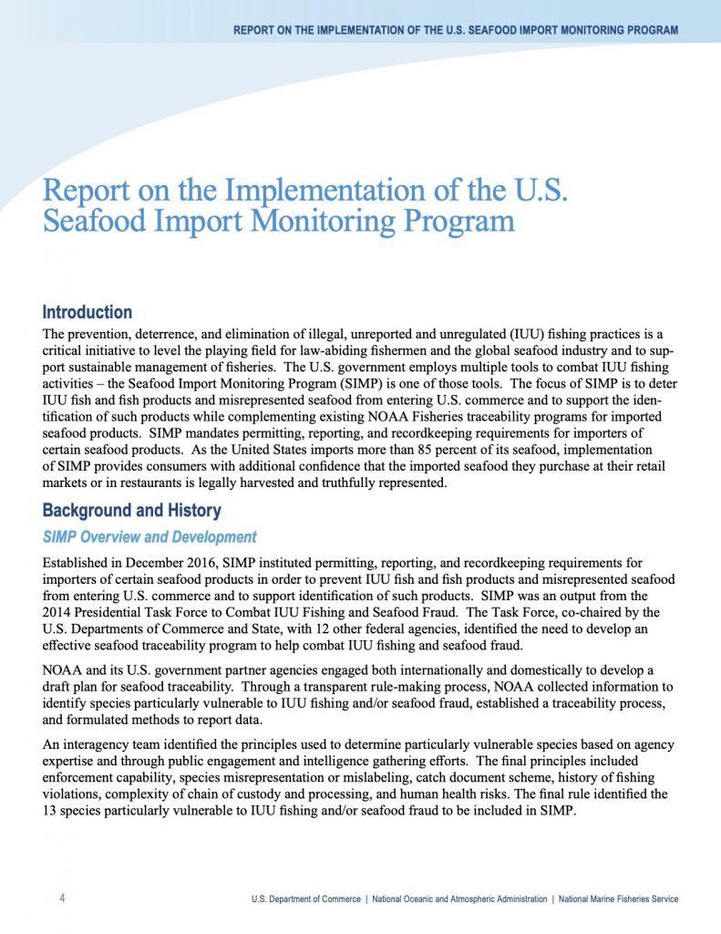 SIMP Implementation Report 2021[3] May 24, 2021 Previous Post:NOAA Releases 2021 Report on the Implementation of the U.S. Seafood Import Monitoring Program