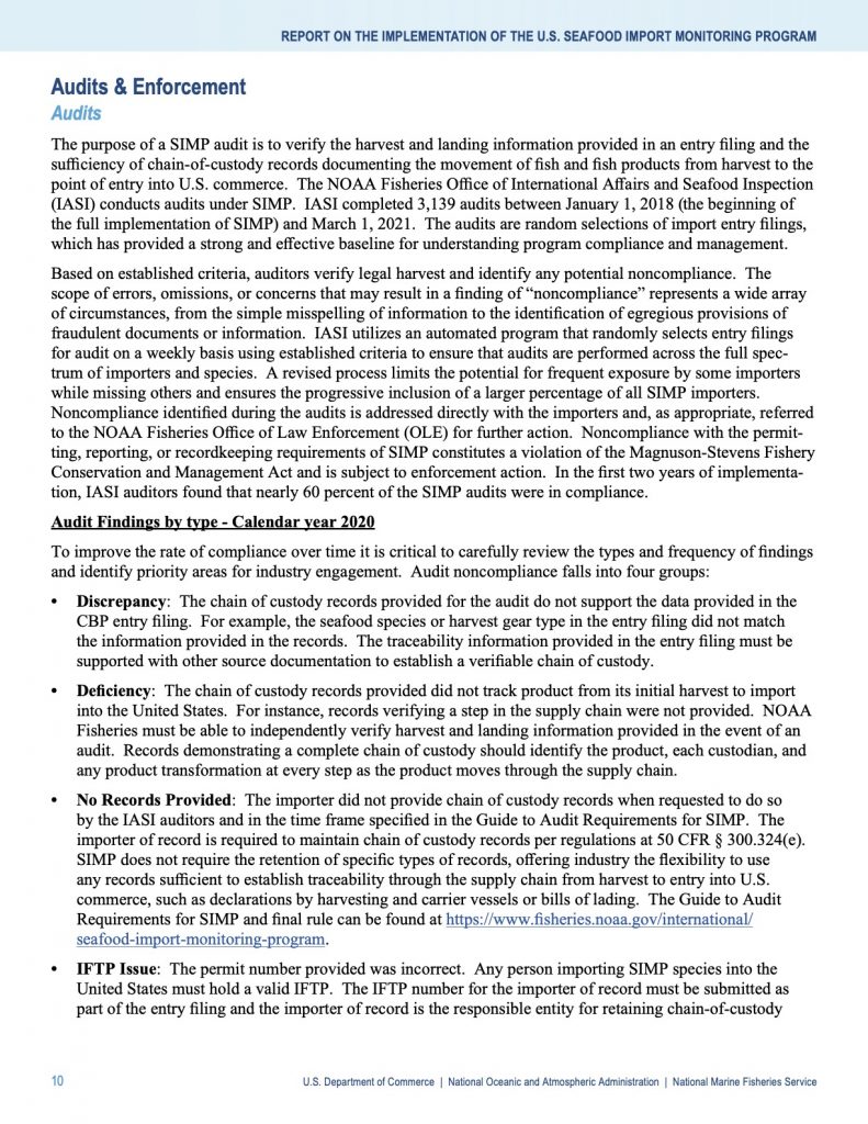 SIMP Implementation Report 2021[9] May 24, 2021 Previous Post:NOAA Releases 2021 Report on the Implementation of the U.S. Seafood Import Monitoring Program