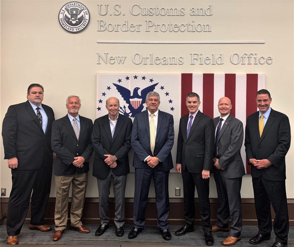 Dr. David Veal, Executive Director of the American Shrimp Processors Association (third from left) joined U.S. Senator Bill Cassidy (R-LA) and officials from NOAA, the Dept. of Commerce, FDA and members of the Louisiana Shrimp Association and Southern Shrimp Alliance to discuss regulatory/enforcement issues surrounding int’l trade in shrimp.