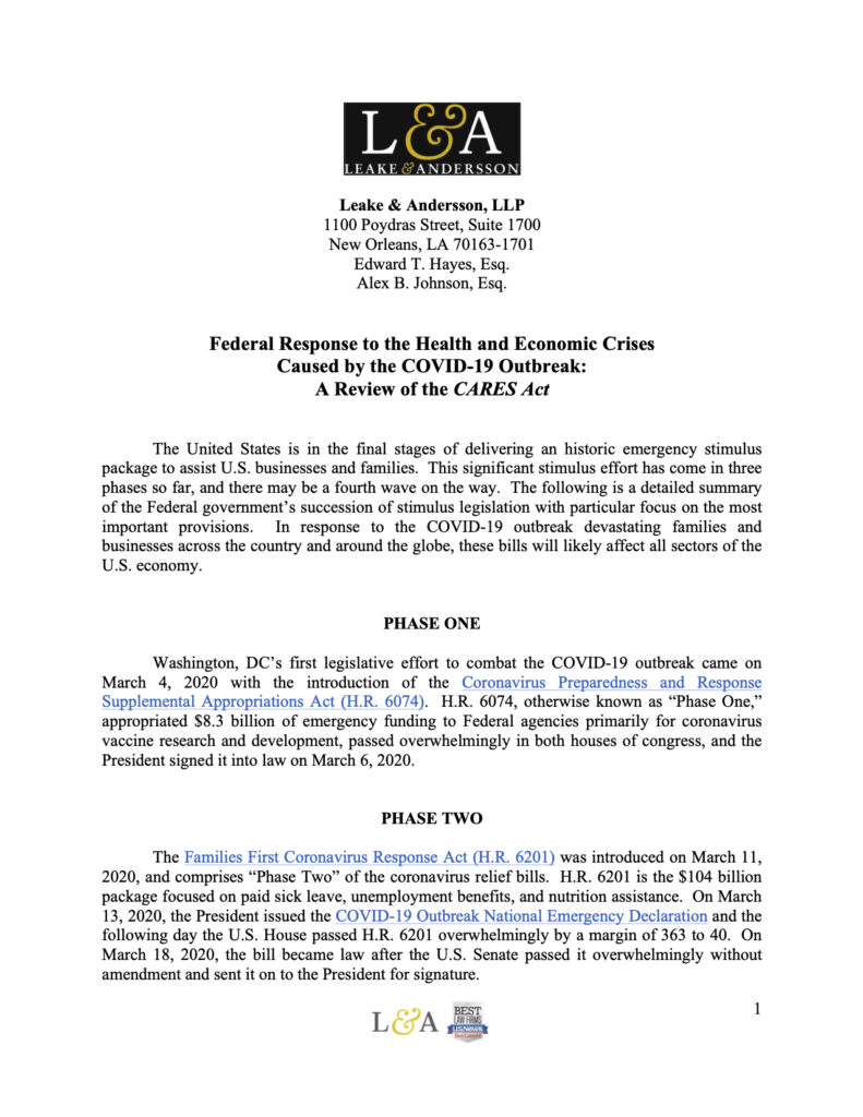 The CARES Act – L&A Summary Page 1 March 26, 2020 Previous Post:Summary of Congress’s $2 Trillion Stimulus Package and What It Means for the Seafood Industry